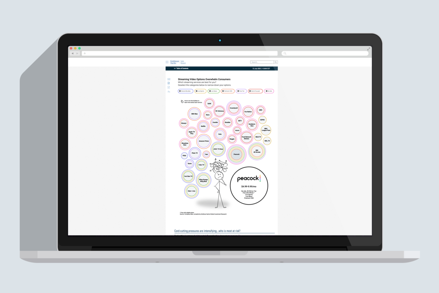 Goldman Sachs' Global Investment Research turned complex data into engaging, interactive stories on the Research Portal. Featuring visuals, real-time data, and customizable insights, the portal made market trends, forecasts, and sector analyses more accessible and actionable for clients and analysts, enhancing their research experience and reflecting the firm's commitment to insightful investment research.